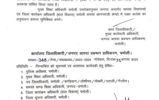 बदलता गढ़वाल न्यूज, गोपेश्वर। मौसम विज्ञान केंद्र देहरादून द्वारा जारी पूर्वानुमान को लेकर जनपद में भारी बारिश का अलर्ट जारी...