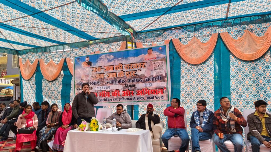 मा. मुख्यमंत्री श्री पुष्कर सिंह धामी की महत्वाकांक्षी पहल जन-जन की सरकार, जन-जन के द्वार कार्यक्रम के अंतर्गत विकासखंड ज्योतिर्मठ की न्याय पंचायत पांडुकेश्वर में शुक्रवार को बहुउद्देशीय शिविर का आयोजन किया गया। शिविर की अध्यक्षता उपजिलाधिकारी चंद्रशेखर वशिष्ठ द्वारा की गई। शिविर में आमजन की समस्याओं का त्वरित समाधान करते हुए विभिन्न शिकायतों का निस्तारण किया गया।