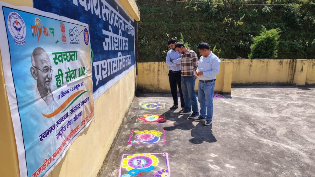 राजकीय स्नातकोत्तर महाविद्यालय जोशीमठ में राष्ट्रीय सेवा योजना के 66 स्वयंसेवियों तथा 24 राष्ट्रीय कैडेट कोर एनसीसी कैडेट्स द्वारा स्वच्छोत्सव अभियान 2025 के तहत आज 24 सितंबर 2025 को स्वच्छता की रंगोली कार्यक्रम के तहत महाविद्यालय में स्वच्छता की रंगोली आयोजन मैं प्रतिभाग किया।