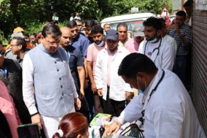 मुख्यमंत्री पुष्कर सिंह धामी शनिवार को चमोली जनपद के नंदानगर आपदाग्रस्त क्षेत्रो का निरीक्षण कर आपदा से हुए नुकसान का जायजा लिया और प्रभावितों का हाल जाना। मुख्यमंत्री ने प्रभावित परिवारों को हर संभव सहायता का भरोसा दिलाते हुए कहा कि संकट की इस घडी में सरकार पूरी तरह से प्रभावित परिवारों के साथ खड़ी है। इस दौरान मुख्यमंत्री ने राहत कार्यो की समीक्षा करते हुए अधिकारियों को प्रभावित क्षेत्रों में हुए नुक़सान का विस्तृत आकलन करने के निर्देश दिए। मुख्यमंत्री ने मृतकों के परिजनों को 5-5 लाख की सहायता राशि के चैक भी प्रदान किये।