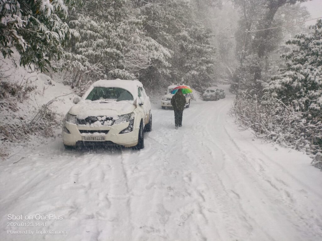 जनपद में भारी बर्फबारी से राष्ट्रीय राजमार्ग सहित ग्रामीण सड़के बाधित, खोलने का कार्य जारी।